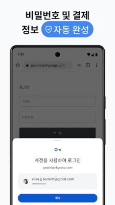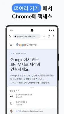어떤 기기를 사용하든, Chrome은 당신의 웹 경험을 끊김 없이 이어줍니다. 휴대전화, 태블릿, 컴퓨터 등 어떤 환경에서든 Chrome에 로그인하면 북마크, 열려 있는 탭, 저장된 비밀번호 등이 완벽하게 동기화되어 언제 어디서든 이전의 웹 활동을 그대로 이어갈 수 있습니다. 효율적인 탭 그룹 기능으로 여러 기기에서 복잡한 탭들을 깔끔하게 정리하고, 자동 완성 기능은 자주 사용하는 주소, 결제 정보, 로그인 정보를 빠르고 정확하게 입력하여 소중한 시간을 절약해 줍니다.