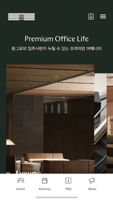 이러한 원그로브의 가치를 더욱 깊이 있게 경험할 수 있도록, 원그로브 모바일 애플리케이션이 여러분을 찾아갑니다. 특히 원그로브 입주사 임직원분들을 위해 설계된 본 서비스는 업무 효율성과 편의성을 극대화합니다. 앱을 통해 미팅 룸, 릴렉스 룸, 이그제큐티브 룸 등 다양한 어메니티 시설을 손쉽게 확인하고 예약할 수 있으며, 중요한 방문객을 위한 사전 등록 절차도 간편하게 처리할 수 있습니다.