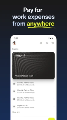 Ramp Mobile은 기업 재무 관리를 여러분의 손안에 재구성하여, 언제 어디서든 스마트하고 효율적인 업무 환경을 선사합니다. 번거로운 서류 작업과 복잡한 절차 없이, 법인 카드 사용부터 경비 처리까지 모든 과정을 직관적으로 통합합니다. 지출 내역을 실시간으로 확인하고, 기업 정책에 맞춰 관리하며, 재정 흐름을 한눈에 파악할 수 있도록 돕습니다.