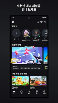 Roblox는 무한한 상상력과 창의력이 현실이 되는 가상 세계입니다. 수백만 가지의 독특한 체험을 마음껏 플레이하고, 직접 새로운 게임과 콘텐츠를 제작하며, 전 세계 친구들과 함께 흥미진진한 모험을 탐험하세요. Roblox에서 나만의 스토리를 만들어가세요.
