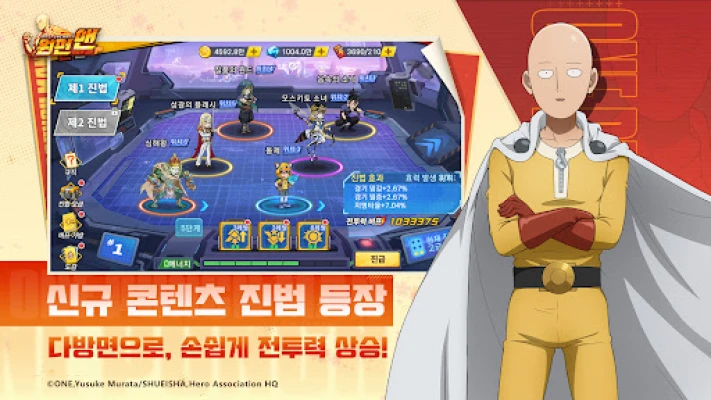인기 애니메이션 '원펀맨'의 첫 정식 라이선스 수집형 턴제 RPG, 원펀맨: 최강의 남자 - Special. 사이타마, 제노스 등 익숙한 히어로들과 함께 원작의 세계관과 스토리를 고퀄리티로 체험하며 괴인에 맞서 정의를 집행하세요. 자신만의 최강 히어로 협회를 만들어보세요.